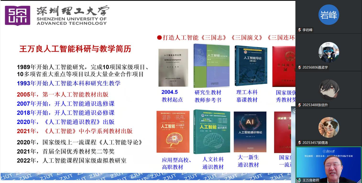 1月28日,学院特邀深圳理工大学计算机科学与控制工程学院王万良教授莅临讲学,带来题为《人工智能通识教育与赋能“四新”专业建设》的专题学术讲座。该专家系统阐释人工智能教育是落实“人工智能+行动”的基础,是赋能四新专业建设的重要措施。讲座通过具体研究案例,生动展示了前沿技术与生物信息学的深度融合,在交流环节中,师生围绕技术应用瓶颈与学科交叉方向与陈教授进行了深入探讨,现场学术氛围浓厚。