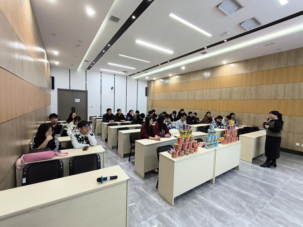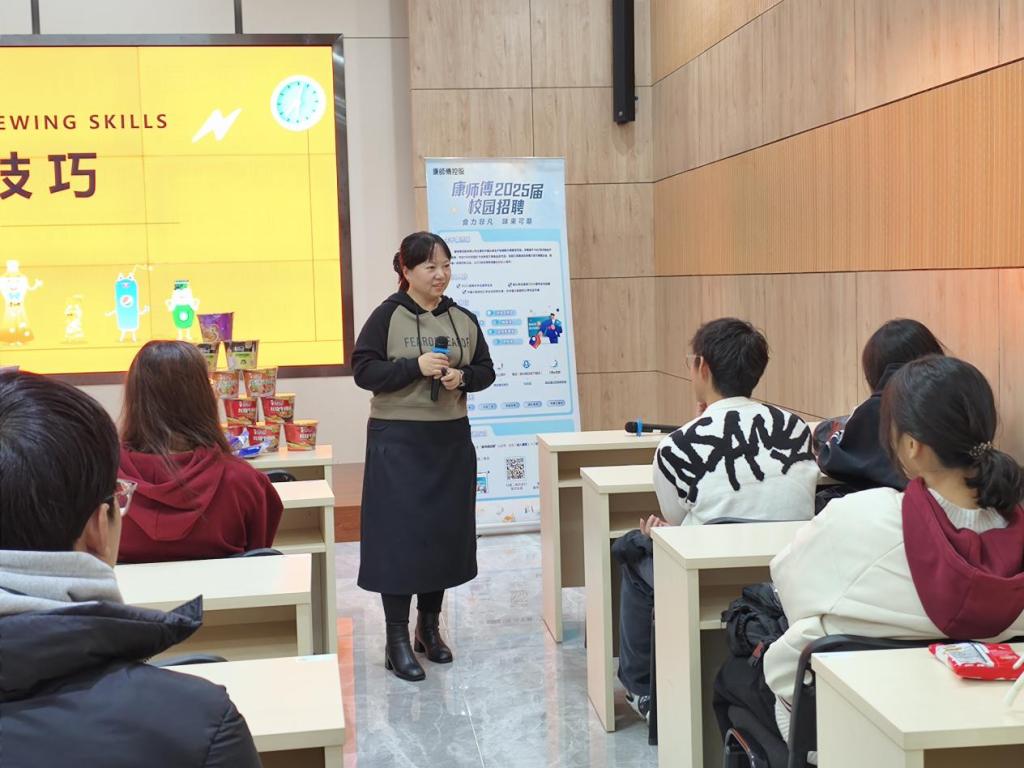在招聘宣讲环节,苏聪就同学们关心的岗位需求、招聘流程、面试技巧等问题为与会员工进行详细介绍,鼓励同学们积极投递简历,加入顶益食品大家庭。赵文曦就企业文化、发展前景及福利待遇等相关信息进行讲解,并耐心解答了同学们的提问。