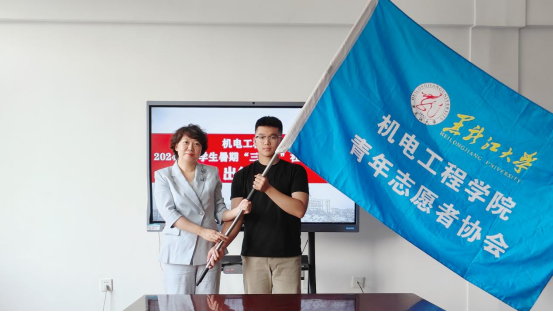 杨宁宁为“三下乡”社会实践团队授旗。授旗仪式后,杨宁宁简要介绍学校2024年暑期社会实践开展情况,截至7月,学校已组建实践团队77支,覆盖30个学院、职能部处,从团队选择来看,共有30支团队选择乡村振兴促进团赛道,占比最高。杨宁宁强调,学院“三下乡”社会实践团队作为30支队伍之一要聚焦“深入基层调查研究,助力解决实际问题”“发挥专业优势,助力乡村振兴”“锤炼意志品质,增强社会责任感”三方面,充分发扬敢于吃苦、乐于吃苦的精神,不断锤炼意志,在课堂理论与现实结合的“大思政课”中受教育、长才干、作贡献,为推进中国式现代化龙江实践贡献青春力量。