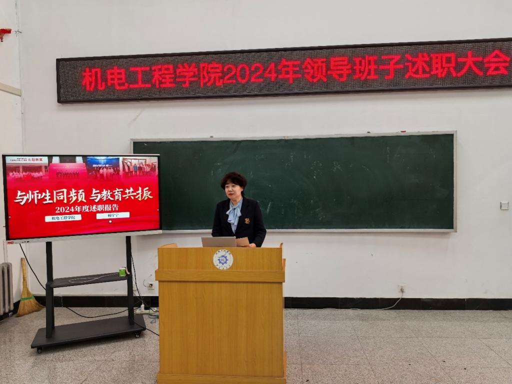 杨宁宁聚焦员工工作板块,以“与师生同频,与教育共振”为脉络,围绕思想引领、员工党建、宣传工作、队伍建设、学风建设、就业指导等重点工作进行述职。她分享了学院在创新思政教育形式、提升毕业生就业质量等方面的实践探索,剖析了当前员工工作面临的挑战,并提出下一阶段优化方案。