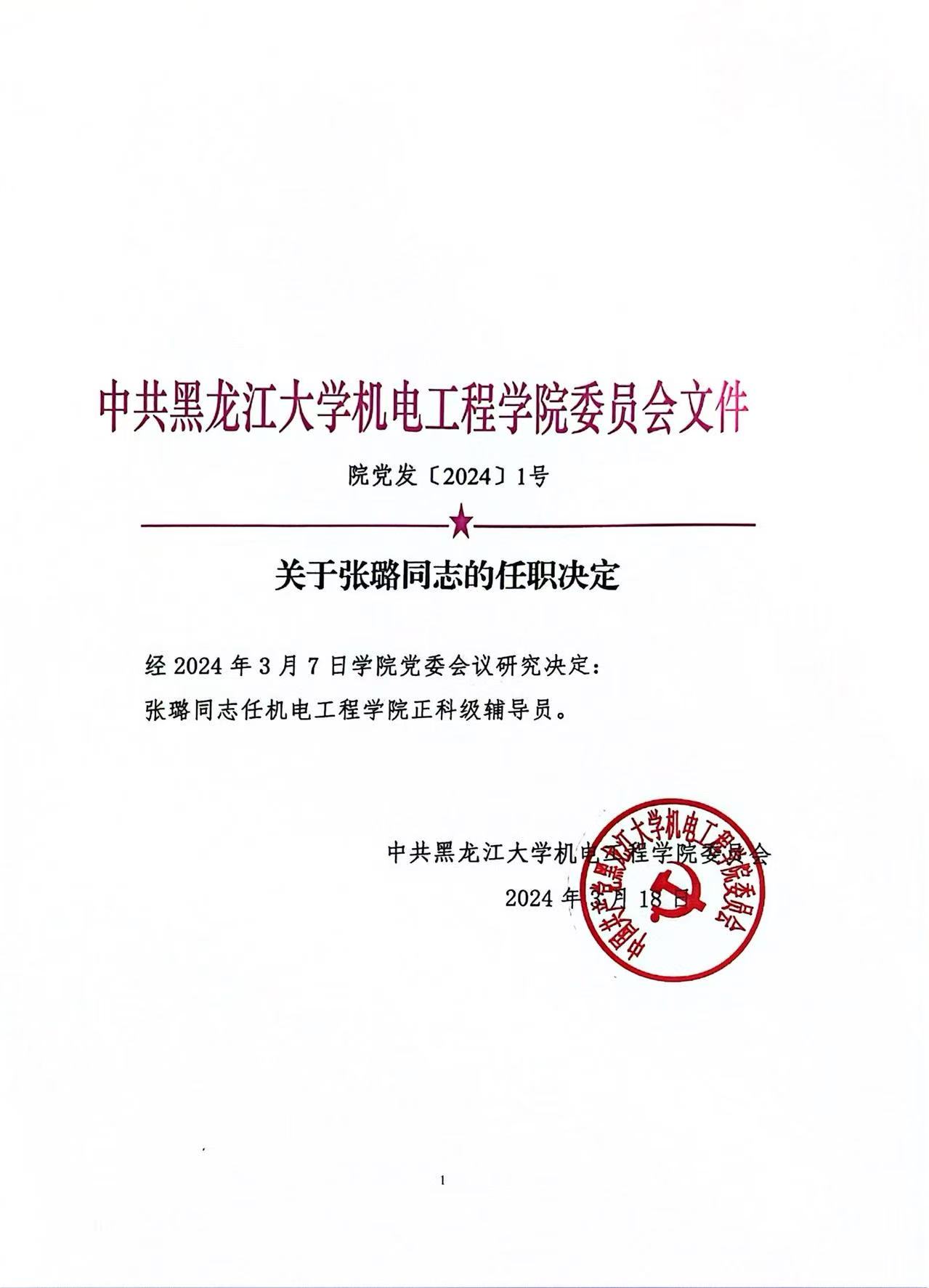 关于张璐同志任职的决定