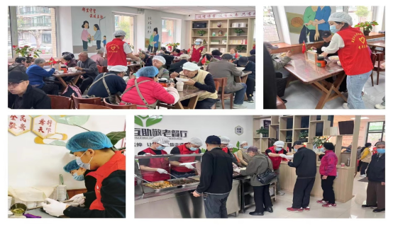 在用餐时间,志愿者们在迎宾端饭,奉碗奉汤等服务过程中尽职尽责,为用餐老人提供了最真挚的服务。