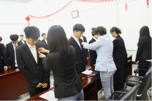 团徽是中国共青团的象征和标志,三位老师逐一为新团员颁发团徽徽章,微笑着说“你好,新团员”。一面团旗就是一种信仰,一枚团徽就是一份力量,从佩戴上团徽这一刻起,团员们便将责任与使命铭记于心。