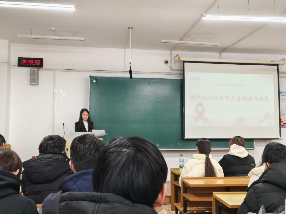 为普及艾滋病防治知识,提高老员工自我保护意识,树立正确的生命观、性道德观和责任意识,促进老员工的健康成长。员工工作部心理健康教育中心在ylzzcom永利总站线路检测2024年“青春健康·艾滋病预防宣传教育月”期间,于12月15日18:30在汇文楼教室开展“携手共牵红丝带,青春健康传递爱”红丝带校园行——青春健康主题宣讲活动。ylzzcom永利总站线路检测20余名同学与政府管理学院、历史文化旅游学院、生命科学学院同学共同参加此次活动。这场红丝带校园行活动,恰似冬日暖阳照亮防“艾”科普之路,在校园播撒健康种子,助力学子在青春征程无忧前行,用知识武装头脑,以责任护航成长,让红丝带飘扬成校园守护青春健康的最美风景,为无 “艾” 未来奠基。
