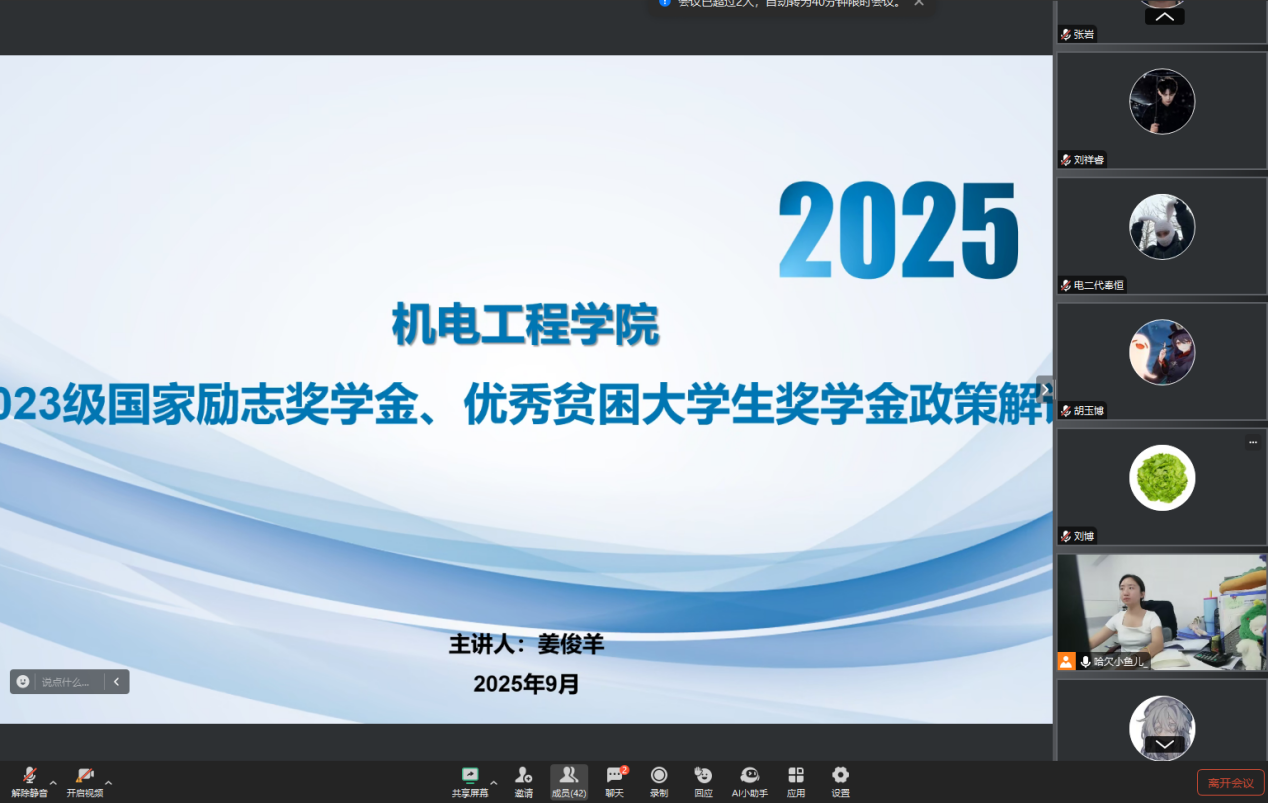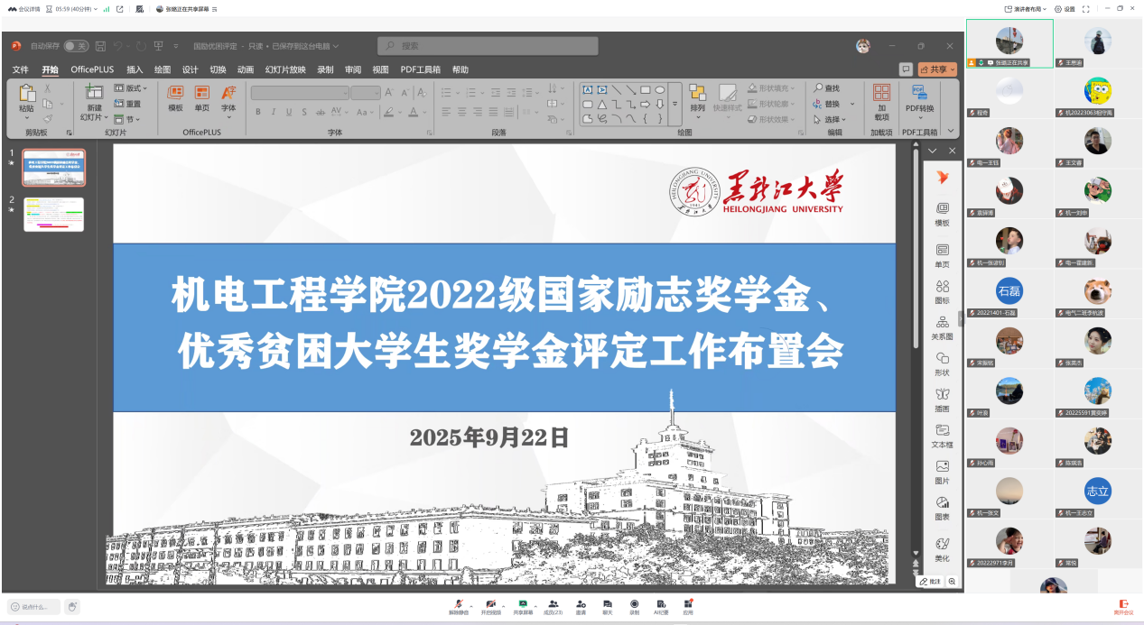 公司召开评审工作小组会议后,各年级线上召开了2024-2025学年国家励志奖学金、优秀贫困老员工奖学金评定大会。此次大会由各年级辅导员老师主持,2022-2024级全体家庭经济困难员工参加本次会议。